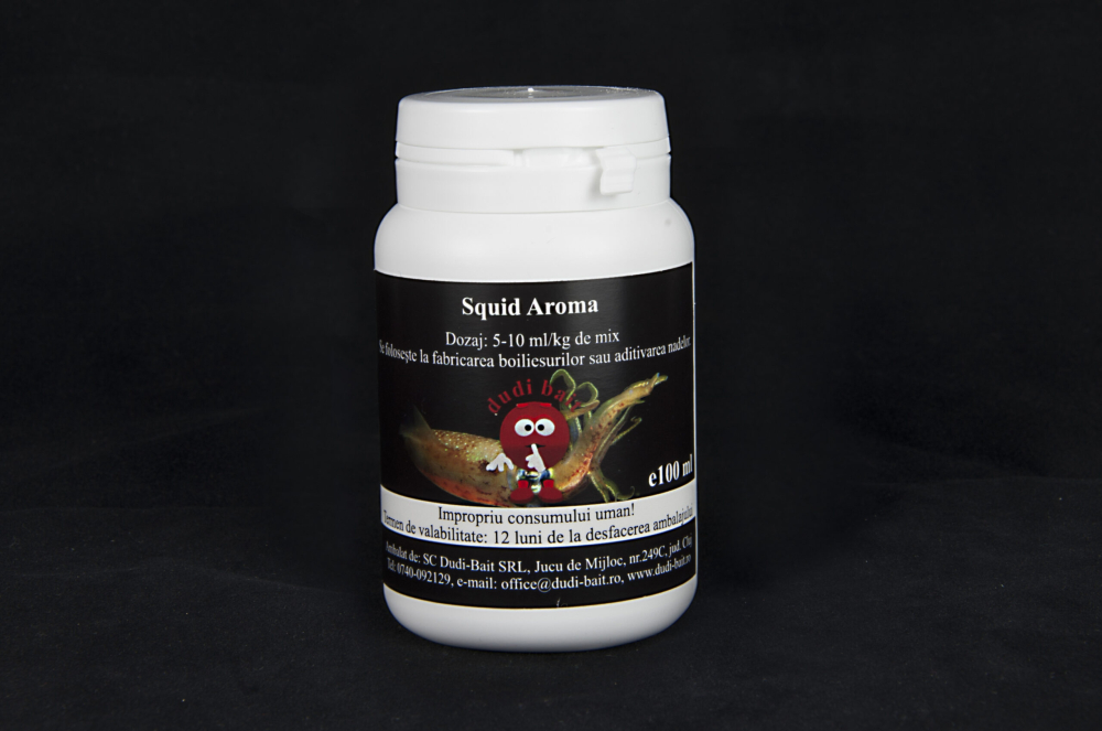 Aroma lichidă „Squid” este o aromă concentrată cu profil marin intens, destinată utilizării în fabricarea boiliesurilor sau la aditivarea momelilor. Formula sa oferă un semnal alimentar puternic și stabil, contribuind la creșterea atractivității nadei în diverse condiții de pescuit.